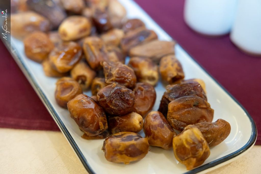 In The Gambia, it is customary to break the fast first with dates and water, followed by a larger meal. Tables are often filled with rice, fish, vegetables, sauces, fruits, and traditional drinks. Iftar is also a time for visiting one another and sharing food.