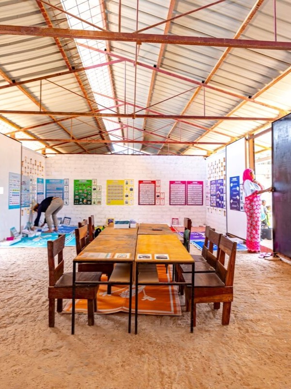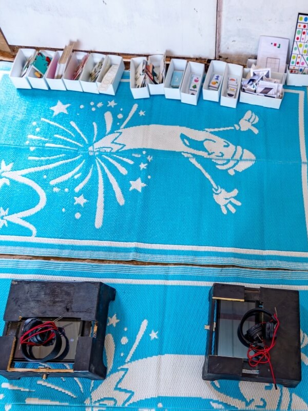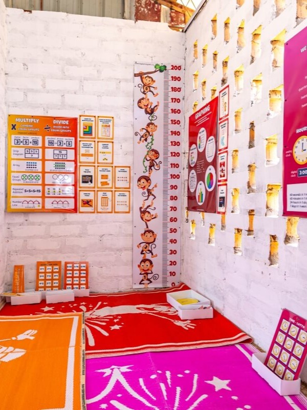 The Learning Lab is a learning space equipped with nine literacy stations (reading, writing, comprehension) and eight math stations (numbers, arithmetic, logical thinking). Each station combines a tablet application, a game, or a hands-on task. Children work independently, while volunteers or teachers provide support and motivation.